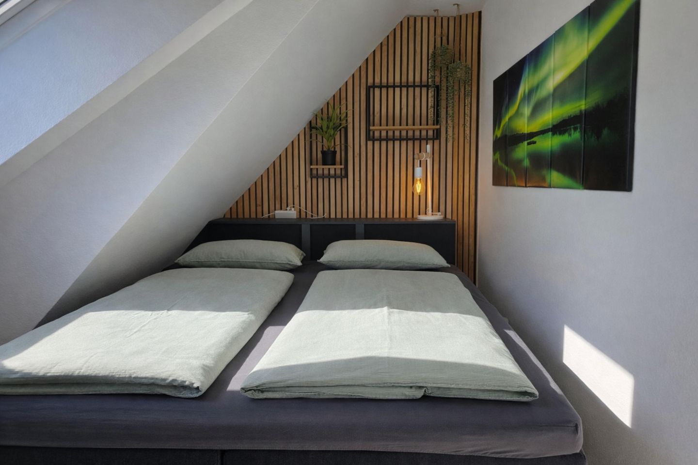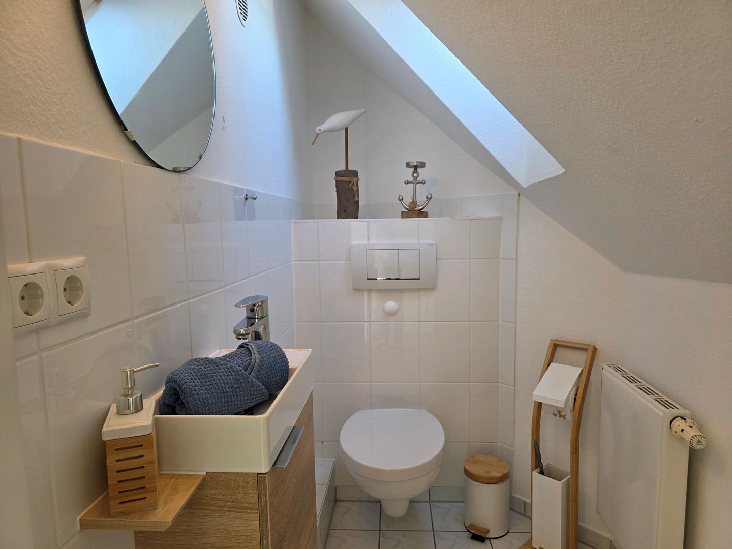 Im Dachgeschoss befindet sich der Schlafraum mit einem komfortablen Doppelbett für erholsame Nächte. Zusätzlich gibt es ein Gäste-WC, das Ihnen Komfort bietet.